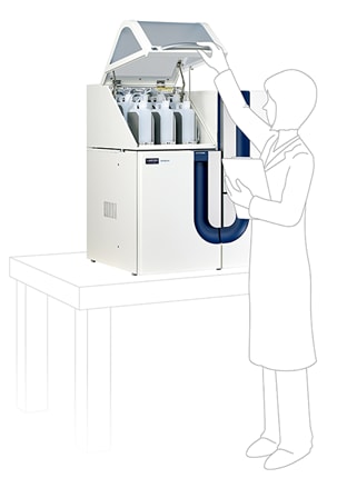 The height of the reagent setup unit accommodates better accessibility. Daily tasks such as reagent replacement, sample setup, and maintenance are made easy and can all be done from a standing position (the work requiring a half-sitting position has been minimized).