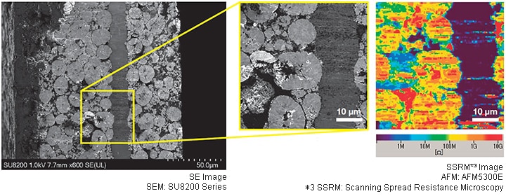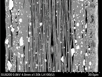 The range of materials and samples that can be subjected to ion cross section milling is not limited to hard matter. In fact, high-quality sectioning can be achieved with the IM4000Plus even with "soft" samples such as paper, polymers, and powders.