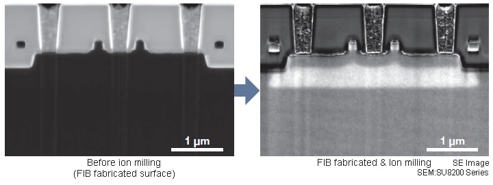 Furthermore, with an increase in the maximum milling rate to 500 μm/h for Si, the new Ar ion gun design of the IM4000Plus enables a reduction of cross section processing times by as much as 66% compared to the previous IM4000.