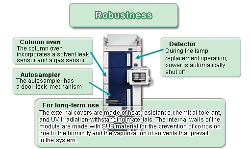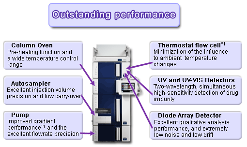 Two performance capabilities supporting data reliability: excellent reproducibility made possible by the pump and autosampler and excellent stability of the column oven and detector.