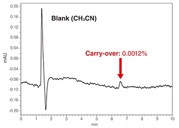 Even when highly adsorbing Chlorhexidine is analyzed, the carry-over is extremely low.
