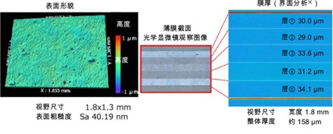 包装膜通过层压具有阻隔性等功能的材料层,防止内装物劣化。因此,比如了解该材料层的膜厚是否可以表现其功能等,对材料各层的膜厚管理非常重要。VS1800不仅可以评估表面粗糙度,还能以无损伤方式显现层内部的结构,评估各层的厚度及厚度不均匀程度,因此有助于包装膜的质量管理。