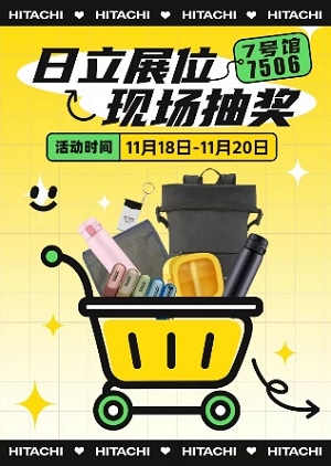 11月18日-20日,欢迎您前来日立展位(7号馆:7506),参与现场抽奖活动。新秀丽双肩背包,象印水杯,迷你桌面加湿器等各种精美礼品,好礼多多,等您领取。