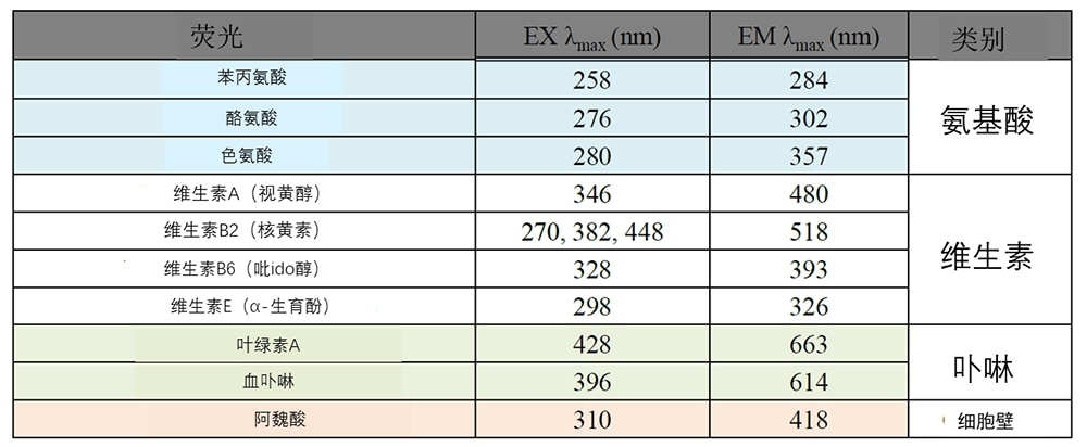 表1 果实的荧光指纹及波长信息