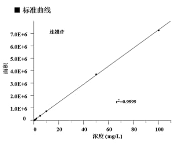 连翘苷标准溶液在0.50 mg/L ~ 100 mg/L浓度范围内获得了r2 = 0.9999 的良好线性关系。