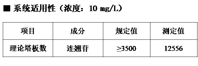 综上所述,日立高效液相色谱仪Primaide 系统测定连花清瘟胶囊(颗粒)中连翘苷含量,符合《中国药典》2015版的要求,测定重现性好,结果准确可靠。