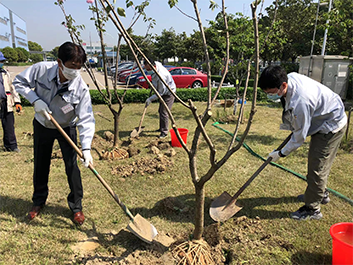 作为该活动的一环,4月11日(周一),该公司组织员工志愿者在公司厂区内开展了植树活动。