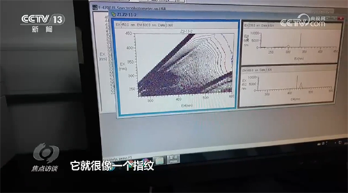正如刘锐所长所说:“指纹信息是水里有很多可以发射荧光的物质,给它一个激发波长,这个物质就会再发射一个波长,形成一个特定的像指纹一样的图谱出来。”