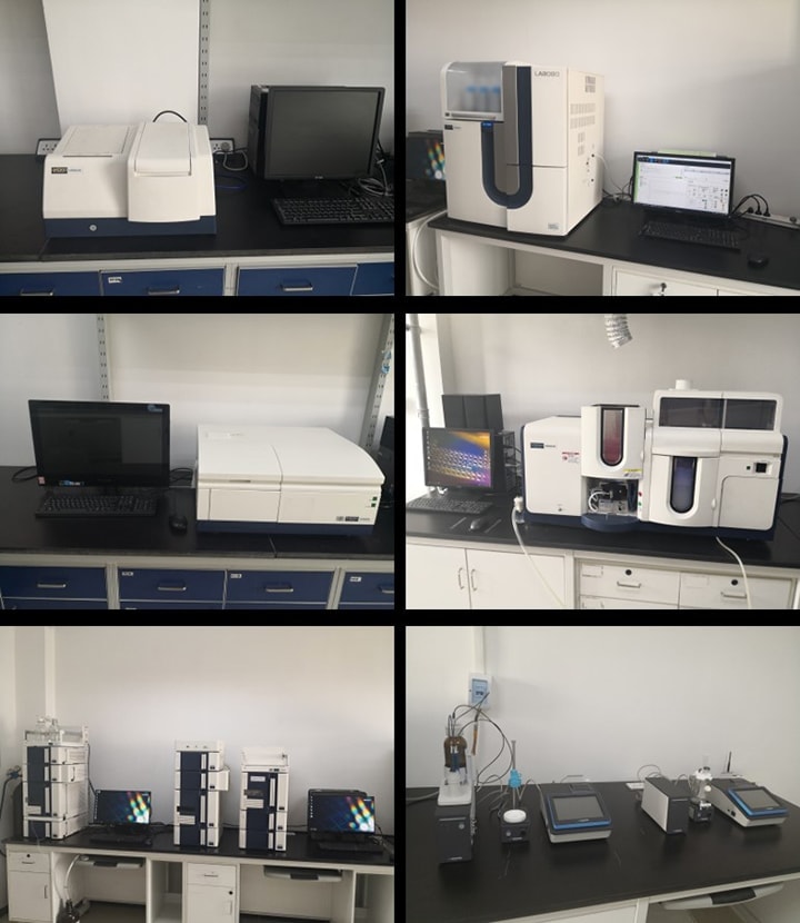 目前联合实验室配备日立全自动氨基酸分析仪、高效液相色谱仪、超高效液相色谱仪、原子吸收分光光度计、紫外可见(近红外)分光光度计、荧光分光光度计,以及日本平沼公司电位滴定仪、水分测定仪等各种分析仪器接近20台(套)。同时,以HSC分析仪器应用部产品专家、饲用中草药团队科研人员为依托,双方共投入实验室人员11名。