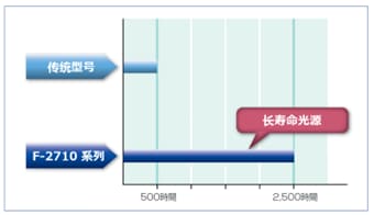 F-2710标配长寿命氙灯,光源寿命(使用限制)为2500小时,是前型号F-2700(500小时)的5倍。