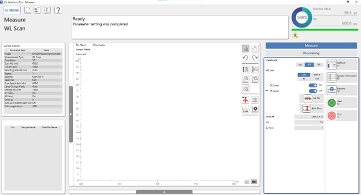 UH5210(PC控制型)搭载新版软件UV Solutions Plus,提供更简洁直观的操作界面,相较于旧版UV Solutions,新增了数据列表显示、自定义报告格式和仪器性能检测功能,提高了分析过程的准确性。同时,UH5200也可通过选配该软件实现PC控制,提升操作灵活性。