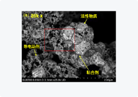 观察隔膜的细微结构可通过超高分辨图像进行观察。这张图像中,以8万倍的倍率进行观察,可以看到隔膜表面的细微结构。 -