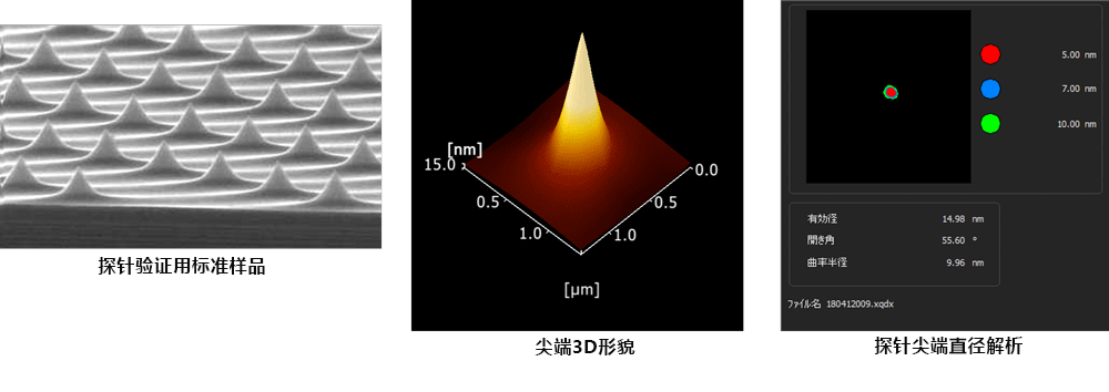 过去,当粗糙度测量结果出现问题时,由于无法掌握悬臂探针尖端直径的数值,因此很难确认数值差异是由于实际样品的表面变化引起的,还是由于探针尖端磨损、测量参数设定造成的。