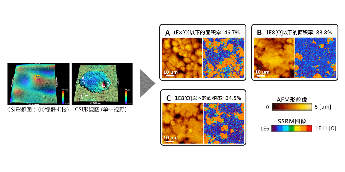 ◆CSI-AFM同一位置观察示例(样品:LiB正极材料表面)