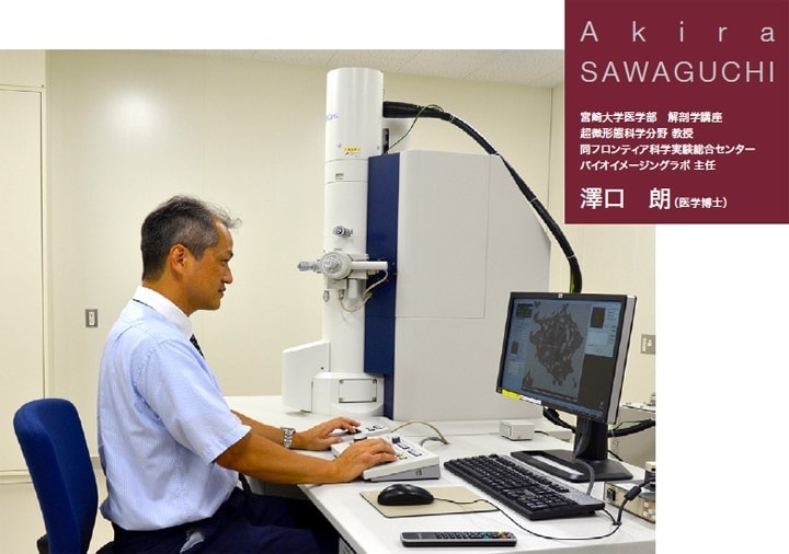 泽口教授在研究生时期,初次接触“高压冷冻方法”。这是一种样品制备的新方法,主要用于形态观察和组织化学分析。观察此方法制备的样品时,他被所看到的图像深深吸引。