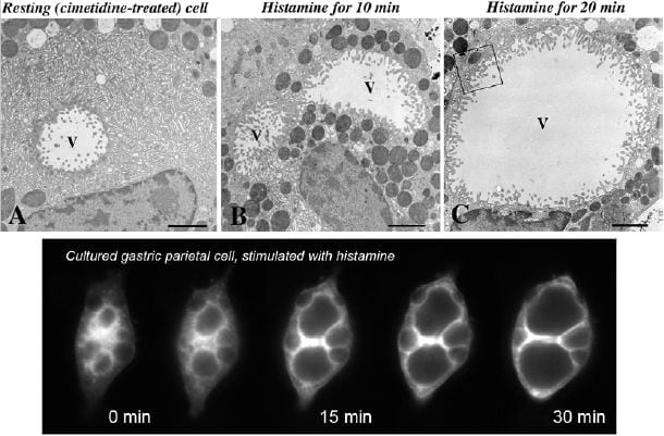 当时,Forte教授实验室的电镜还不能观察到培养细胞分泌胃酸的状态。泽口教授勇于尝试高压冷冻方法,在铝制样品容器上培养细胞,这一实验具有划时代的意义。对每个样品容器进行高压冷冻、冷冻置换、树脂包埋处理,细胞切片制备完成后,通过电镜可成功捕捉到胃酸分泌的瞬间,图像十分清晰。这种可观察到培养细胞鲜活状态的创新方法,被很多论文争相引用。虽说UC伯克利校区有不少学者得过诺贝尔奖,但没有人做电镜分析,因此宫崎大学陆续接到了UC伯克利校区的电镜分析“订单”。泽口教授强烈地意识到高压冷冻方法的进步,所以决定回国发展。