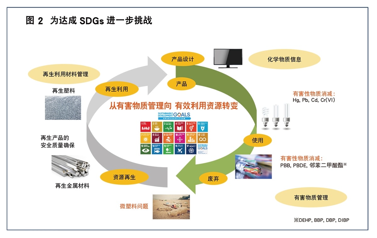在各种各样的环境问题日益表面化的今天, 应对可持续性也将左右企业价值、事业成败。产品含有化学物质关系到联合国的SDGs (可持续发展目标) 的众多目标,尤其是与目标12 的“负责任消费和生产” 密切相关。不仅限于管制应对, 而且要在意识到环境价值之上采取积极的对策, 这有助于提高企业价值。