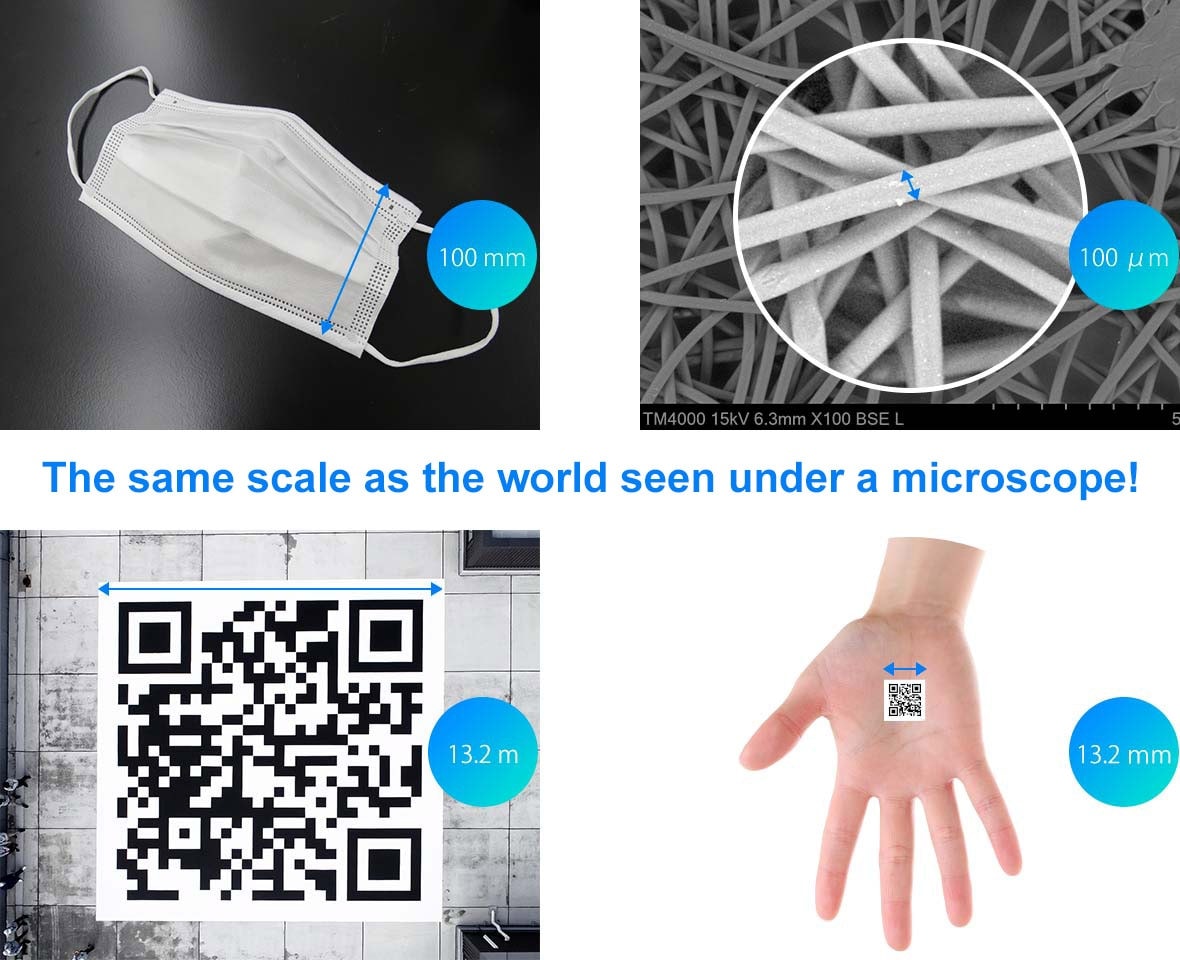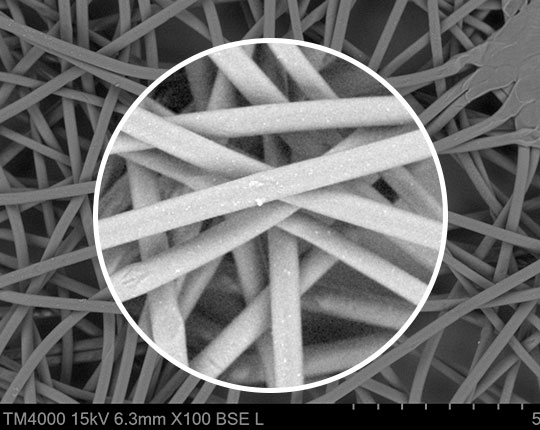 When you look at the mask with an electron microscope, you can observe the thickness of the fiber!