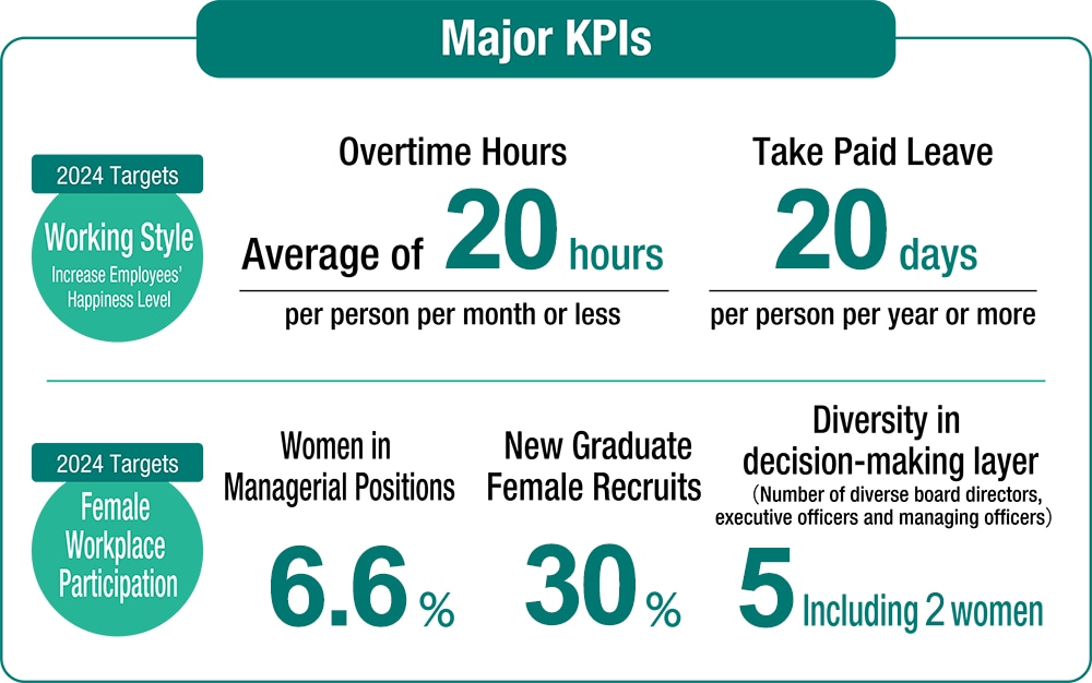 With the aim of expanding the base of corporations engaged in diversity management, the Ministry of Economy, Trade and Industry is implementing the "New Diversity Management Selection 100 program" program to recognize corporation that are making active use of the capabilities of diverse personnel and channeling them into value creation. We have been engaged in initiatives to improve institutional systems that enable diverse work-styles and provide career development support to women. Our continuing efforts to improve our environment and nurture a corporate culture by such means have been recognized for having contributed to increased performance as an outcome of management practices.