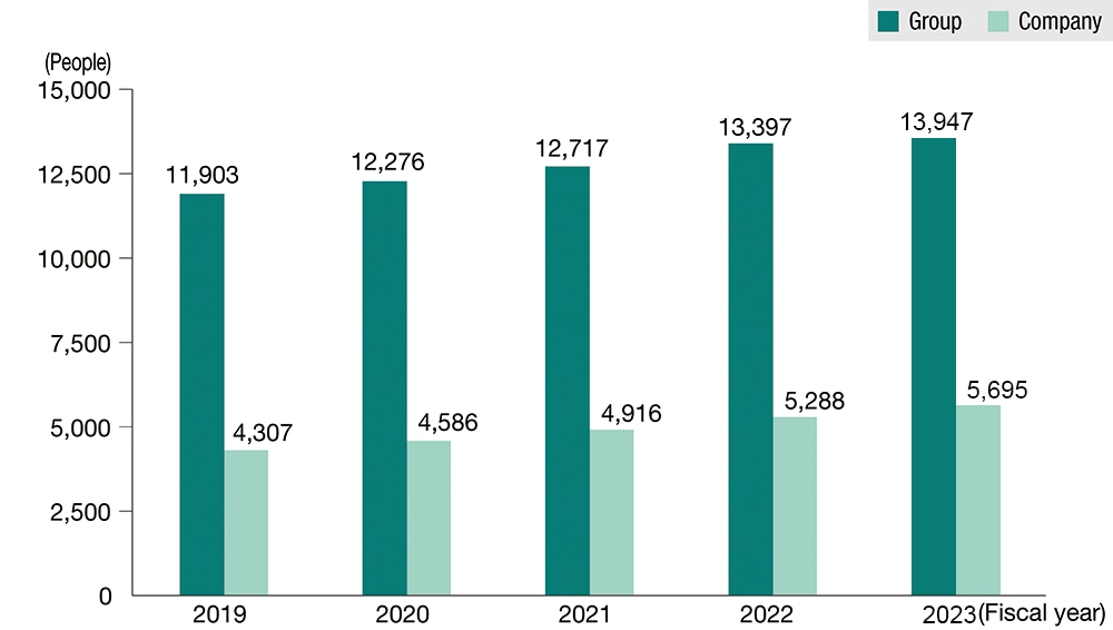 The Group had 12,717 employees in Japan and overseas as of March 31, 2023. We seek to avoid discrimination on the basis of race, nationality, religion, gender, or disability in our hiring practices and endeavor to create and maintain stable employment.