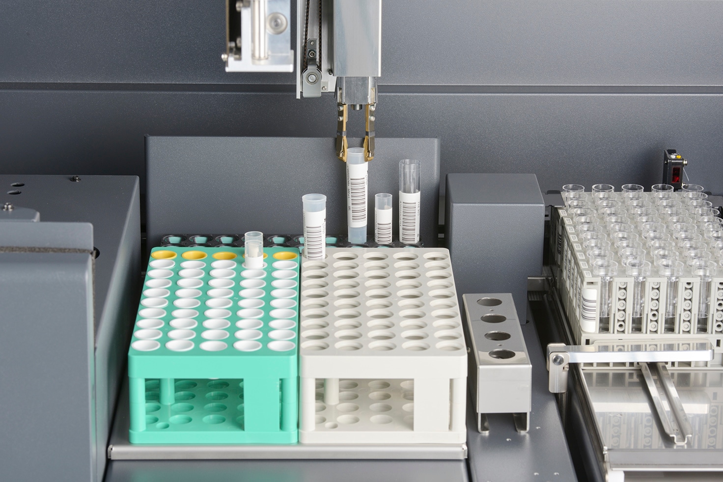 The LabFLEX2600G Pre-analytical Specimen Processing/Aliquoting System is a space-saving, all-in-one system. It handles pre-analytical specimen processes from specimen arrival checks, de-capping, aliquoting, and labeling of the daughter specimen containers, to external transport.