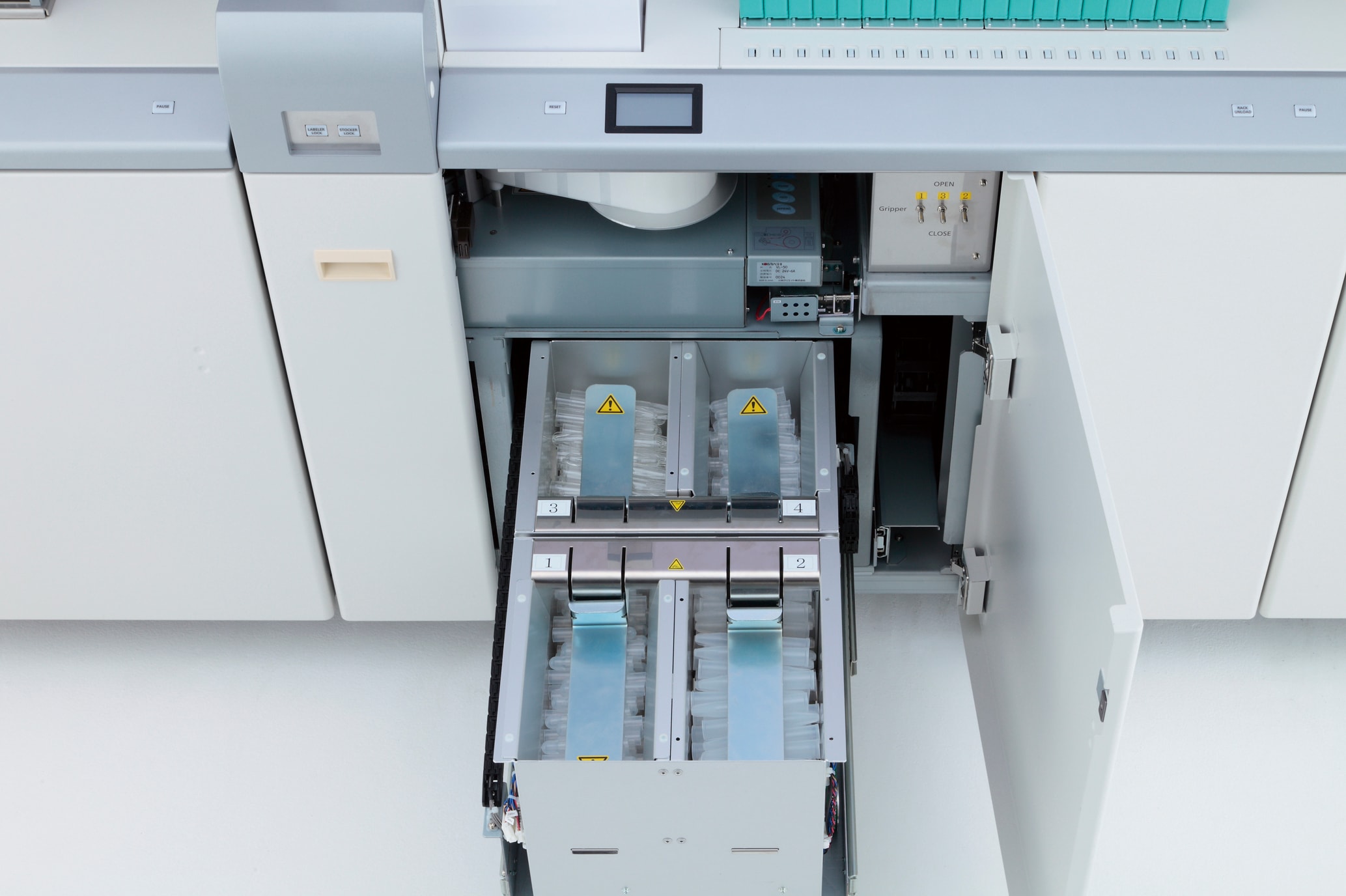 Hitachi has realized automated secondary tube supply by built-in tube feeder. It supports simultaneous use of up to 4 tube types from commercially available tubes and allows tube selection for use depending on test items.