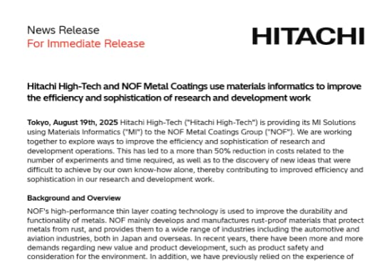 Hitachi High-Tech and NOF Metal Coatings use materials informatics to improve the efficiency and sophistication of research and development work -