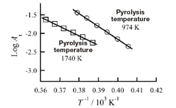 where R is the gas constant, T is the interior temperature of the furnace, and A0 is a constant. The quantities Ea and ΔH may be determined from the slope of a plot of ln At vs. T-1.