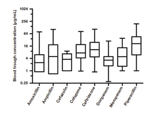 Fig. 1 Variation in blood trough concentrations of beta-lactam drugs in emergency/intensive care patients