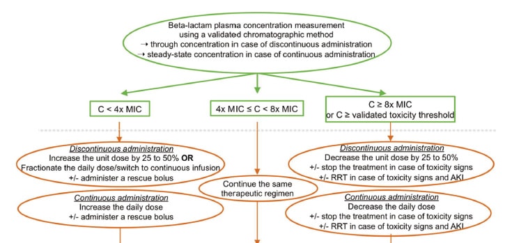 Fig. 2 Flowchart for adjusting dosages of beta-lactam drugs based on blood concentrations in TDM