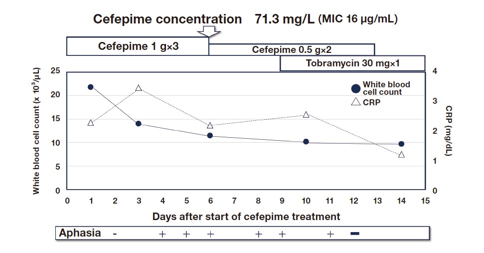 TDM-based dose reduction of cefepime for neurotoxicity in this patient with aphasia cured the infection.