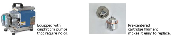 Equipped with an oil-free vacuum pump and a replaceable cartridge filament for easy maintenance.