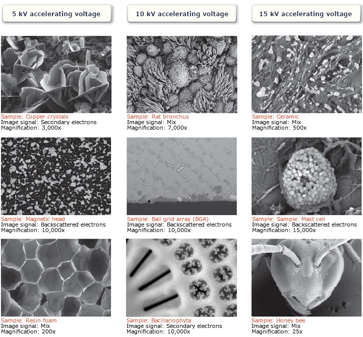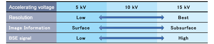 | Accelerating voltage | 5 kV, 10 kV, 15 kV | |