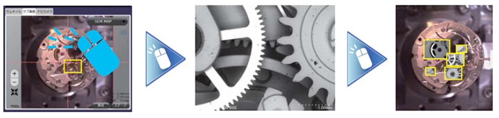 モータードライブステージとの併用で、SEMで撮影が困難な低倍高精細広領域観察が行えます。