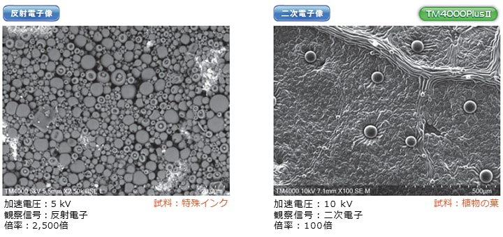 これまでの導電性試料の観察だけでなく、絶縁物や含水・含油試料まで前処理なしでそのまま観察できます。二次電子像⇔反射電子像の切替も素早く行えます。