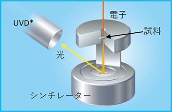高感度低真空二次電子検出器(UVD)を採用。電子線と残留ガス分子との衝突によって発生した光を検出することにより、二次電子情報を持った画像を観察することができます。また、本検出器をコントロールすることにより、電子線照射により発生した光を検出することでCL情報(UVD-CL:CL情報を含んだ画像)を取得することが可能です。