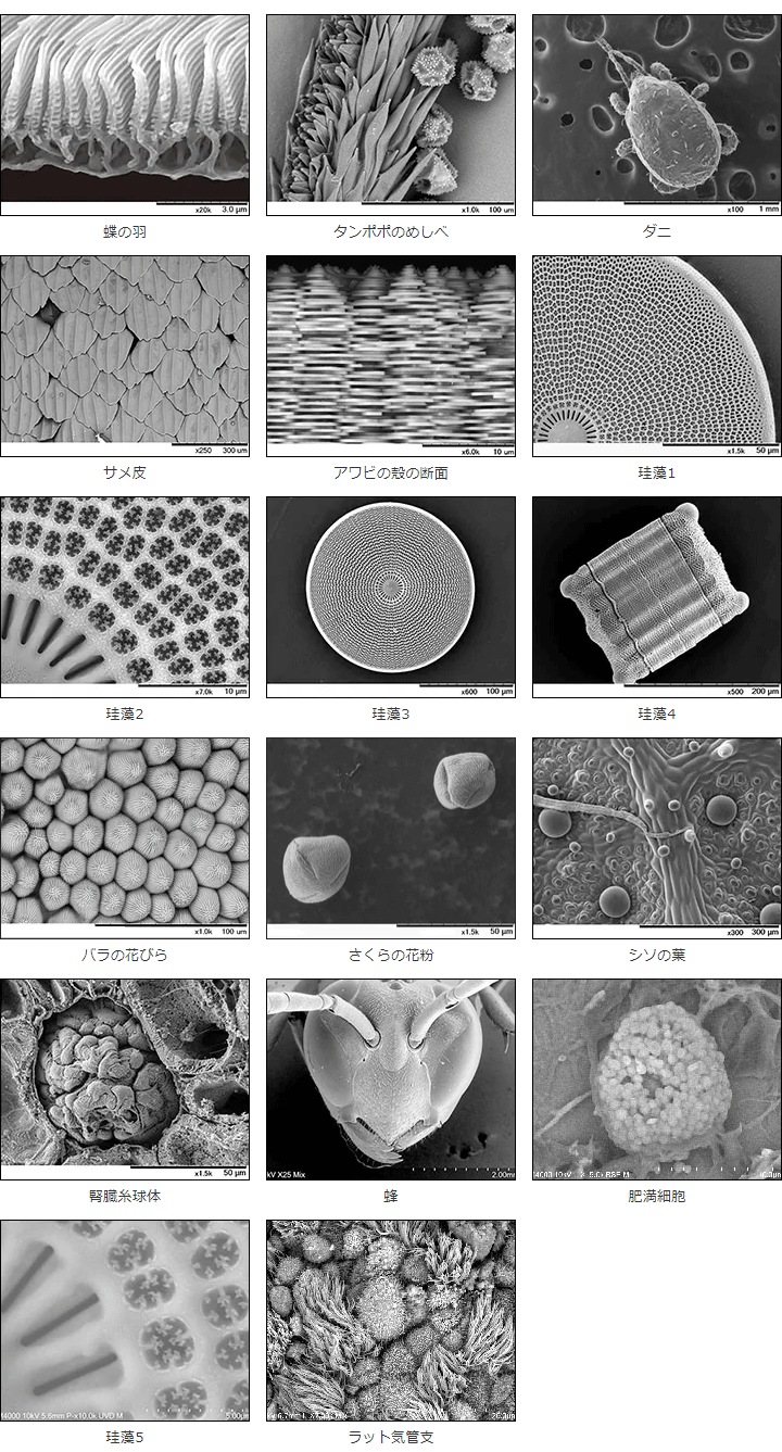 日立のSEM、TEMで撮影した私たちの身の回りにいる生物、化粧品、繊維などの極微の世界をミクロ先生が紹介します。