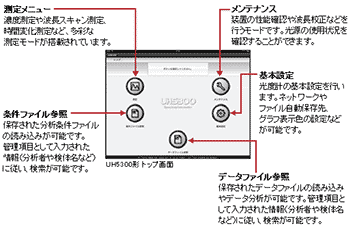 * UH5300形分光光度計をご使用いただくためには、本体以外に、「iPad」「無線LANルータ」などのお客様準備品が必要になります。詳細はお問い合わせください