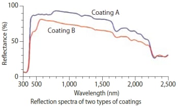 Near-infrared light from the sun is a source of heat that can pass through glass windows and cause the temperature of a room to rise. Because of this, functional glass has been employed in recent years that cuts near-infrared light. In addition, functional coatings have been used on the outer walls of buildings to reflect near-infrared light. The optical characteristics of functional glass and functional coatings were measured.