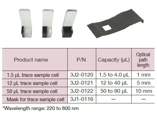 Trace sample cells are used in combination with a mask (3J1-0116) (2 included). These are suitable for ultra-micro volume with volumes of 1.5 to 90 µL.