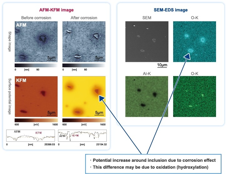 [Evaluating AFM-KFM-SEM-EDS of Aluminum Alloy before and after Corrosion]