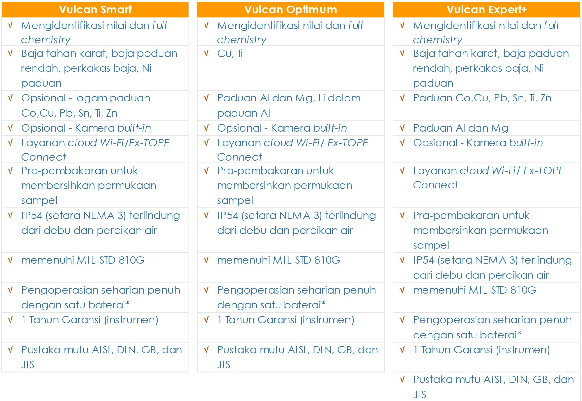 - Kumpulan kalibrasi yang ekstensif mencakup semua jenis paduan umum - berat dan ringan.