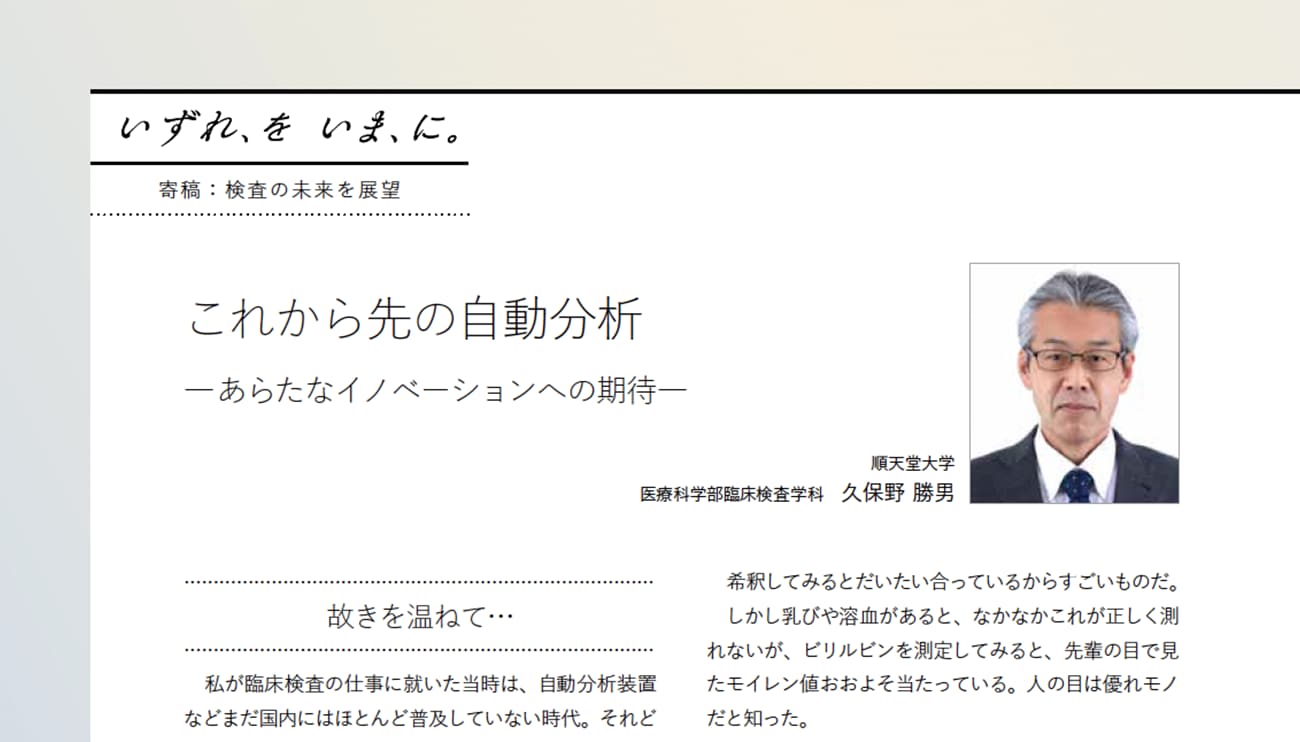 これから先の自動分析―あらたなイノベーションへの期待―/久保野 勝男 氏(順天堂大学医療科学部臨床検査学科)を掲載しました。