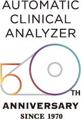 国産初の生化学自動分析装置の誕生から50周年記念ロゴ
