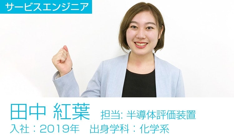 就活イベントで私の出身校の先輩とお話しする機会があったのがきっかけです。先輩は電子顕微鏡を担当していて、サービスエンジニアの仕事について詳しいお話を聞くうちに興味を持つようになりました。私が学校で専攻していたのは化学工学で、現在所属している評価装置部とは直接関係がない学科ではありましたが、サービスエンジニアという仕事の「技術力」と「コミュニケーション力」を必要とする点が自分に向いているのではないかと考えました。
