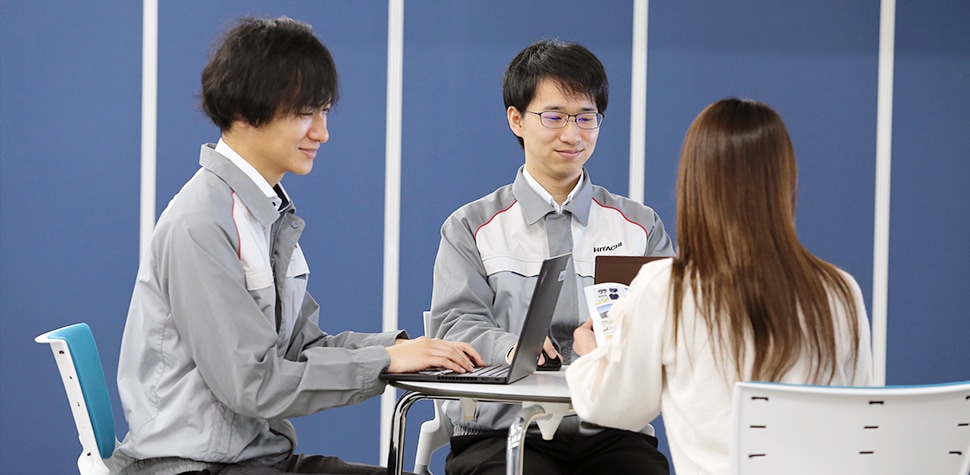 自社での階層別教育実施のほか、日立製作所の教育機関における専門的知識研修(機械・情報・電気・電子等)や階層別教育の実施、e-learningでの学習や外部研修機関への参加など、充実した教育プログラムを用意し、より高いフィールドで活躍できるように、個々人の自己実現をサポートしています。
