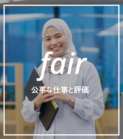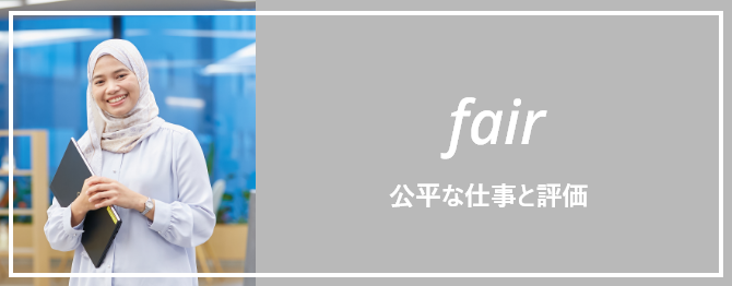 性別や人種、年齢、障がいの有無にかかわらず、やりがいある仕事が任される。(fair)