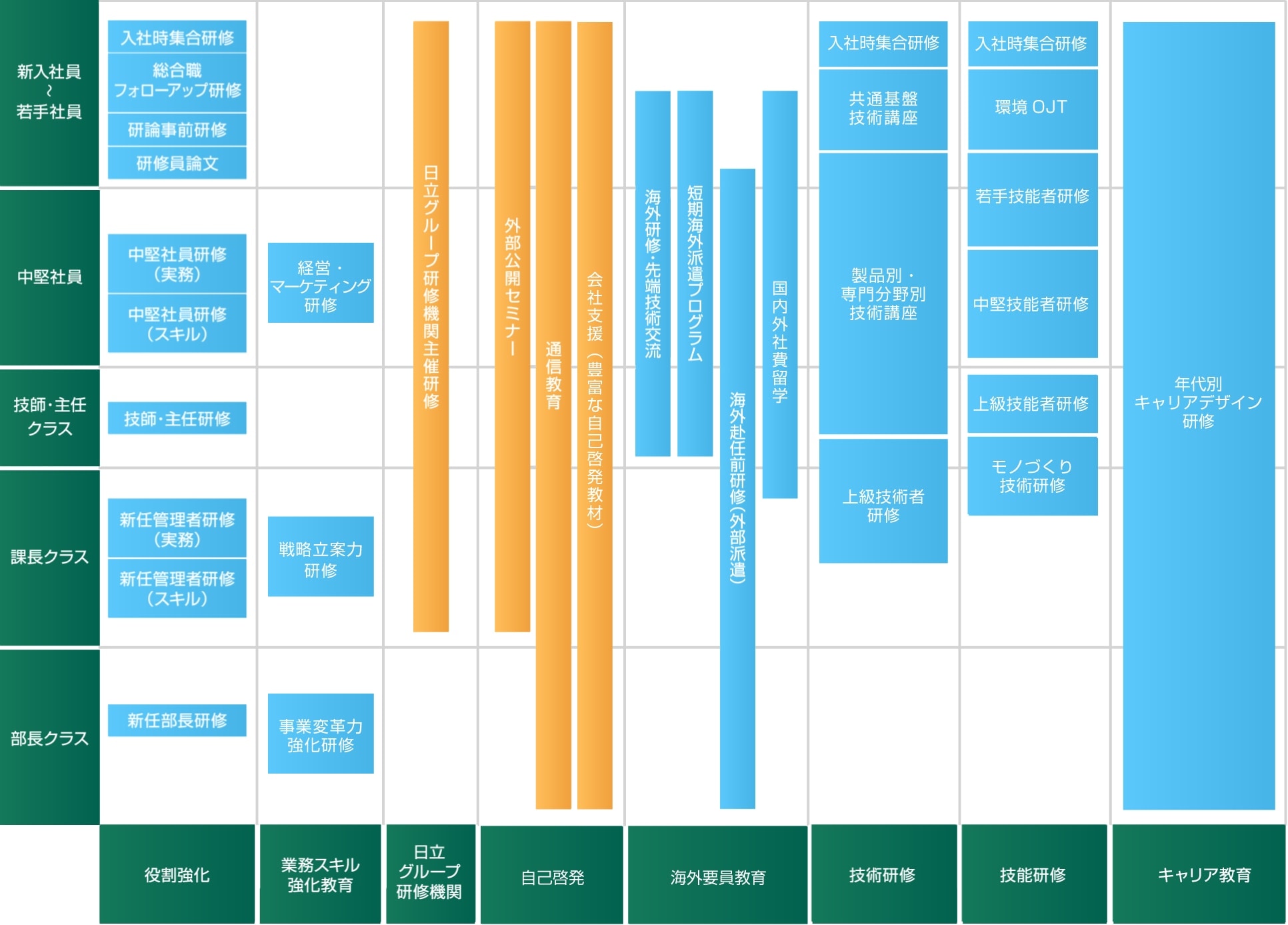 日立ハイテクでは、職務の専門性を高めるための豊富な研修と、