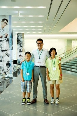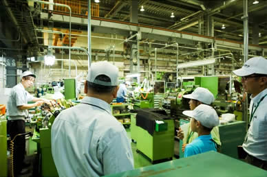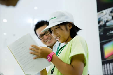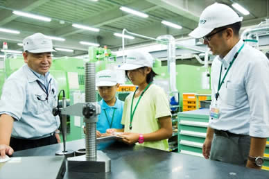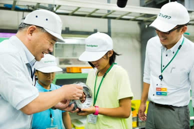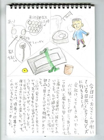 TOP 事業セグメント ヘルスケア・ソリューション ナノテクノロジー・ソリューション バリューチェーン・ソリューション コアテクノロジー・ソリューション プロジェクトストーリー #1 業界最先端を切り拓く開発 #2 新ラインナップとなる製品開発 #3 日本と世界をつなぐ海外活躍 #4 可能性を広げる革新的な開発 #5 世界No.1シェアのモノづくり #6 次世代につながる新技術開発 仕事と人 エンジニア 営業 事業スタッフ 人財育成・福利厚生 人財育成 福利厚生 ワークライフバランス ダイバーシティ 社会貢献活動 採用情報 求める人財像 新卒選考プロセス キャリア採用特設サイト 募集要項 グループ採用情報 >マイナビ25 >マイナビ26 >アルムナイ 新卒ENTRY キャリアENTRY ENGLISH 那珂工場、調達部の見学には西村家の涼花ちゃん、拓真くんがきてくれました。しっかりもののお姉さんと、すこしやんちゃな弟くん。今回は、涼花ちゃんが途中からの参加だったので、拓真くん、はじめは少し緊張していたようです。工場と事務所を行ったり来たり。モノづくりの入り口の部分を担う調達の仕事は、二人にはどう写ったのでしょうか。 お父さん:西村(調達部) こども:涼花(すずか)ちゃん、拓真(たくま)くん 見学当日の朝。家族でご飯を食べながら、一日の予定について話します。拓真くん、ちょっと緊張気味!? お母さんとお姉さんにお見送りされながら、一足先に車で出勤。いってらっしゃい!お父さんの仕事現場に行くのはもちろんはじめて。ドキドキしてきました。 会社に到着!新しくてきれいな建物だなあ。学校よりも広い敷地だなあ。 早速名刺を受け取って、準備をします。「僕の名刺より、かっこいいんじゃない?」お父さんのほうが興味津々です。 まずは、工場を一周見学しながら、日立ハイテクの仕事を学びます。その中で、調達の仕事を知っていってもらいます。 「あれは、何の仕事をしているの?」見たこともない機械に、見たこともない作業。興味が募っていきます。 工場全体を見ながら、工程の説明。「そういえば、拓真の友達のお父さんはあのへんで働いてるぞ。」急に親近感が湧いてきます。 工場の中にも入っていきます。拓真くん、緊張からか、まだ表情が硬いですね(笑) 「あれが、電子顕微鏡。お父さんが調達した部品でつくられているんだよ。精密機械だから、ホコリひとつ入っちゃダメな部屋なんだ。」「ホコリひとつ!? すごいね!」 午前中は工場をしっかり回って勉強したので、ちょっと早めの昼休憩。ここで、涼花ちゃんの合流です。頼りになるお姉さんが来てくれて、拓真くんにようやく笑顔が戻ってきましたよ。 では、気を取り直して、昼ごはんでエネルギーチャージしよう。 休みの日には、一緒にフットサルをしたことがある、お父さんの同僚も一緒に来てくれました。 昼休みは、日立名物スポーツのパンポンをやりました。もともと、工場で余った端材をラケットにして始まったミニテニスのような競技です。今や、日立グループおなじみのスポーツなんです。 はじめてにしては、うまくできたかな?兄弟のチームワークが光ります。 昼からは、お父さんの職場に突入。仕事のお手伝いです。 お父さんは、普段はパソコンを使って、部品の発注をしています。価格は適正か、どのくらいの数が必要か。さまざまな交渉をしていく仕事です。 ちょっとパソコンを触ってみようか。お父さんの代わりに、発注です。その1クリックで、大きなお金が動いていくことにドキドキ。 今度は、部署のメンバーが、書類を持ってきました。「承認お願いします!」 「わかりました!」しっかりと押印。お父さんは重要な仕事をしているんだなあ。 「こんどは、コピーをとってきて」お父さん、ホントに仕事モードになってきましたね。 親子揃って、一緒に仕事をする。お父さん、背中がちょっと幸せそうですね。 色んな人にあって、名刺もたくさんたまってきました。 次は、より工場の現場をしっかり勉強するために、再び工場へ。案内してくれたのは、加工のスペシャリスト、上遠野さん。 現場の最前線へと向かっていきます。改めて、大きい工場だなあ。 機械の中では、金属がくるくる回りながらいとも簡単に削られていきます。 金属の加工精度は、ミリを超えたミクロンの世界。手で触ってもわからないレベルの厚さを、機械で測定していきます。 この精度の加工で、自社製品の部品もいちから工場でつくっているんですね。 最先端を生み出す工場ですが、中には、人の手を介さなければ完成しない工程もあります。 とても勉強になりました。ありがとうございます。 今日の最後は、電子顕微鏡の操作体験です。お父さんが調達した部品でつくった機械です。 見た目はパソコンみたいですが、拡大できる倍率は、月から地球の地上に置いた10円玉が見えるほどだそうです。すごい! 涼花ちゃんは、いつもメモをしっかりとる勉強家。拓真くんは、顕微鏡に夢中です。 これは、ありの顔です。拡大してみると、