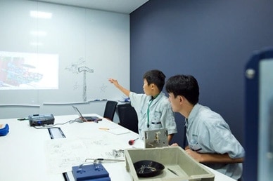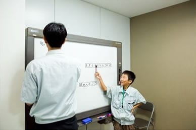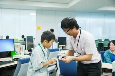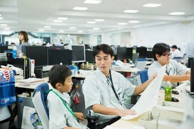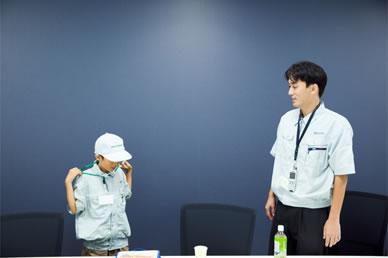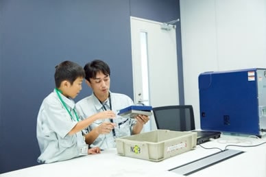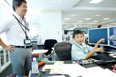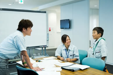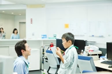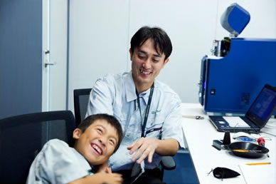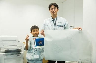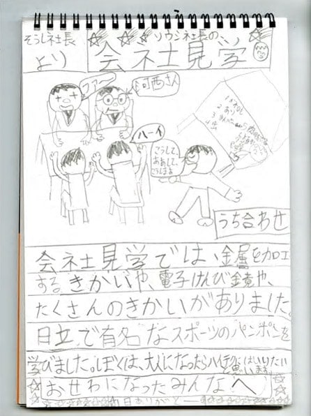 TOP 事業セグメント ヘルスケア・ソリューション ナノテクノロジー・ソリューション バリューチェーン・ソリューション コアテクノロジー・ソリューション プロジェクトストーリー #1 業界最先端を切り拓く開発 #2 新ラインナップとなる製品開発 #3 日本と世界をつなぐ海外活躍 #4 可能性を広げる革新的な開発 #5 世界No.1シェアのモノづくり #6 次世代につながる新技術開発 仕事と人 エンジニア 営業 事業スタッフ 人財育成・福利厚生 人財育成 福利厚生 ワークライフバランス ダイバーシティ 社会貢献活動 採用情報 求める人財像 新卒選考プロセス キャリア採用特設サイト 募集要項 グループ採用情報 >マイナビ25 >マイナビ26 >アルムナイ 新卒ENTRY キャリアENTRY ENGLISH 先端解析システム設計部の会社見学には、大南家から11歳の蒼志くんが登場。「今日は一日社長にやってきました!」朝から元気に社長宣言をしてくれた蒼志くん。今日は、お父さんが一日部下になる日!?さて、大南社長は、どんな活躍をしてくれるのでしょうか。お父さん、今日は社長にしっかりいいところを見せましょうね。 お父さん:大南(評価解析システム製品本部) こども:蒼志(そうし)くん 会社見学スタート。お父さんはいつも作業着。蒼志くんも今日は作業着で参加です。ちょっとサイズが大きいけれど、決まってますね。 「これが、蒼志社長の名刺です」 まずは、工場に向かって突き進みます。 さっそく、お父さんの仕事仲間に遭遇。「こんにちは、蒼志社長です」 お父さんの仕事は、電子顕微鏡の開発。現場では、どんどんハイテクな機械が組み上がっていきます。 部品置き場に到着。お父さんにとっては見慣れた光景でも、蒼志くんにとってはキラキラした風景なのです。 真剣なまなざしで、機械の組立を見つめる蒼志くん。モノづくりには、興味津々です。 「工場って、上から見ると広いんだね」「あのあたりで、お父さんの設計したものが加工されているんだよ」 お部屋に戻って休憩。蒼志くん、なんと発明クラブに入っていて、壁掛けソーラー扇風機を自分で発明したそうです。この発想には、お父さんもびっくり。 次は、お父さんのオフィスで、仕事体験。「あ、どうも、蒼志社長という者です」 蒼志社長、いきなり部長のデスクを借りて、仕事を始めました!?働き者の蒼志くん、将来が楽しみですね。 部長のスケジュールをチェック。これも社長の大事な仕事かな。 「ちょっと実際に図面を書いてみようか」初めて触るCADに、蒼志くん、ちょっと緊張気味です。 お父さん、すごいモノをつくっているんだなあ。細かい設計図を食い入るように見つめる蒼志くん。 発明家としての、血が騒ぎますね。 では実際に作図をはじめてみましょう。何を設計しようかな? 星がうまくかけましたね。 すると、お父さんが星を立体化してくれました。蒼志くんは隣でお絵かきタイム。 なんだかほとばしる才能を感じますね…… 実際に描いた図面をプリント。すごい、ちゃんと立体になっています。蒼志くん、人生で初めての設計図が完成しました! 「今何の設計しているんですか?」色んな人に聞いて回ります。 「ここでは、何の会議をしているんですか?」会議にも飛び込んで行ってしまう度胸。さすがですね。 今度は、電子顕微鏡の組み立てをやってみましょう。モノづくりは、得意分野ですからね。 細かいネジ回しも、お手の物。さすが、慣れていますね。 設計図を確認しながら、着々と組み立てを進めていきます。さすが、飲み込みがはやい。 部品を本体にセッティングして、ようやく完成! さて、午前中はよく働きました。おまちかねのお昼ごはんです。蒼志くんは、カツ丼をチョイスしました。 おや、2人、いつの間にか同じ姿勢で食べていますね。 全部きれいにたべました。ごちそうさまです! 食後の腹ごなしは、やっぱりパンポン。 蒼志くんは、スポーツも得意なようです。 昼からは、社長直々に会議に参加。テーマは、「卓上顕微鏡の展示会でどんなものを準備するか」です。 こどもの視点から、どんどんアイディアをだす蒼志くん。 なんと、決まった内容のほとんどが蒼志くんのアイディアからでした。いい仕事、しましたね。 さて、ここからはいよいよ午前中に組み上げた電子顕微鏡でいろんなものを研究します。 実は、あらかじめ見たいものを用意してきたんです。昔お父さんから、アメリカ土産にもらった宝石の原石です。 「へぇー、拡大するとこんなふうになってるんだね!」 「もっと倍率をあげたらどうなるかなあ」蒼志くん、興味津々です。 「蒼志は将来、仕事何するの?」「日立ハイテク!」お世辞でも何でもなく、蒼志くん、そう言ってくれました。 最後に、お父さんと記念撮影。ピース。 今日は一日、おつかれさまでした。 お父さんと仲良く自転車で帰っていく、蒼志くんでした。 蒼志くんの絵日記 TOP 事業セグメント プロジェクトストーリー 仕事と人 人財育成・福利厚生 採用情報 ENGLISH アルムナイ マイナビ